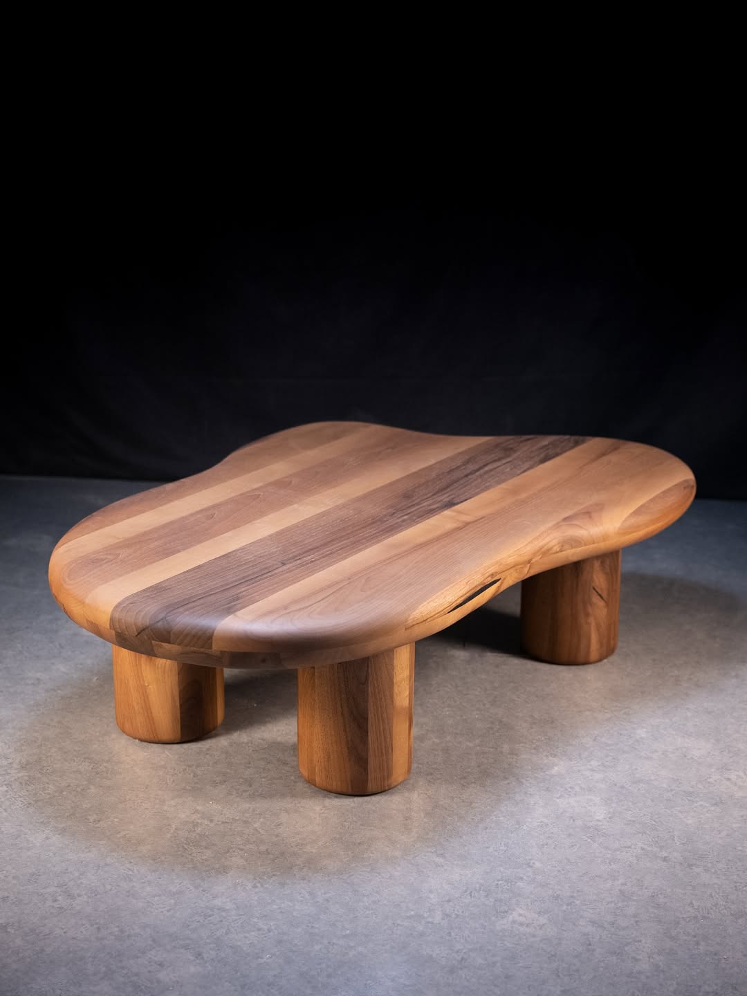 - agnified, softened, and sculpted – a coffee table inspired by river-worn rocks, crafted entirely from wood.